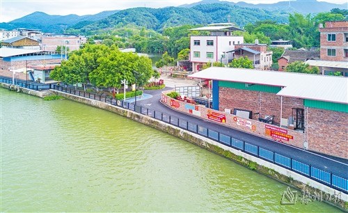 長沙圩鎮(zhèn)碧道鋪設了瀝青并劃分跑道和自行車道,“顏值”再獲提升。(林翔?攝)位于梅江河圩鎮(zhèn)段碧道沿線的紅色休閑廣場效果....